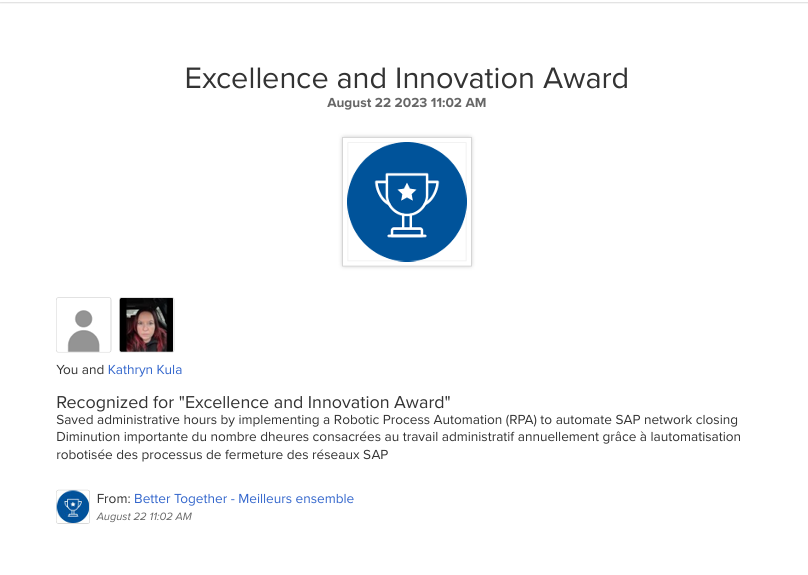 - Automated 100,000+ network closures using Python and SAP scripting, achieving $3.5M annual savings; recognized with Bell Canada Innovation Award